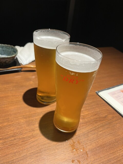 それより先に、ファーストドリンク は、生ビール。 グラスが 肉薄で 口当たりが とても良いです。