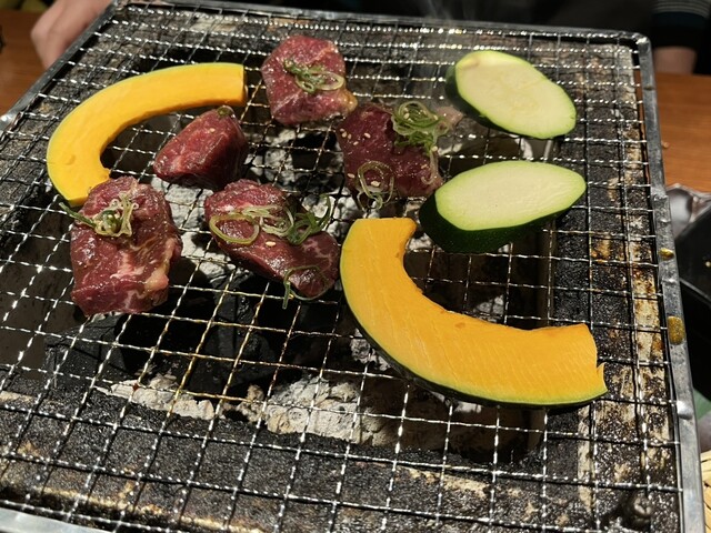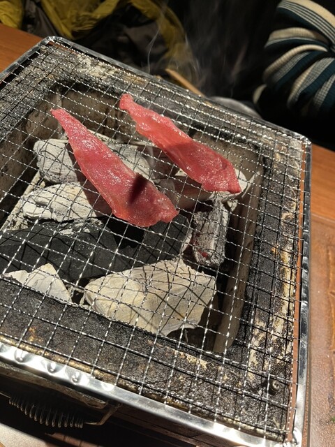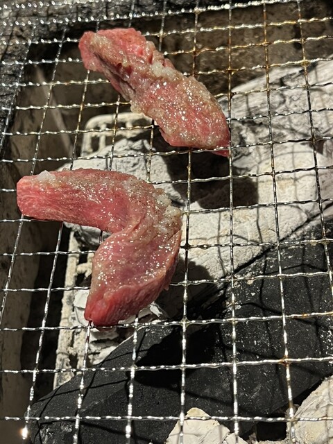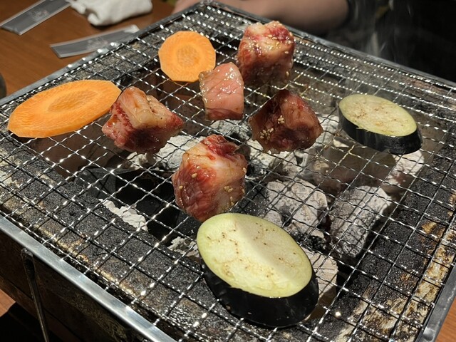 テーブルに置かれた炭火 で 火を通していき、好みの焼き加減で 食べていく、って 贅沢ですね。