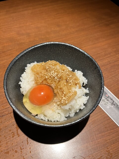 黄金玉子ご飯 は、4種あって、注文した(茶色)は、なめたけ が トッピングされています。