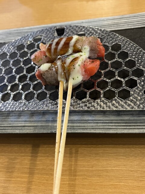 注文した 鉄板串 が 運ばれてきました。