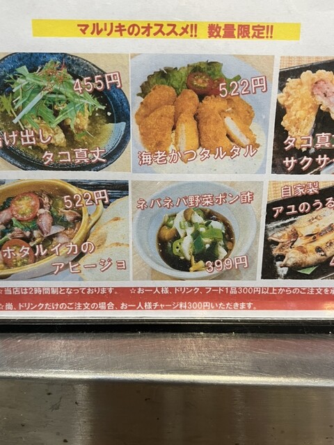 メニューを見ながら、飲みながら、もうちょっと アテを考えます。