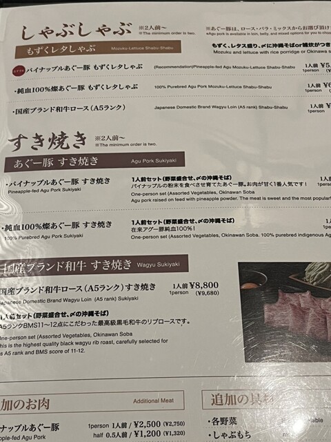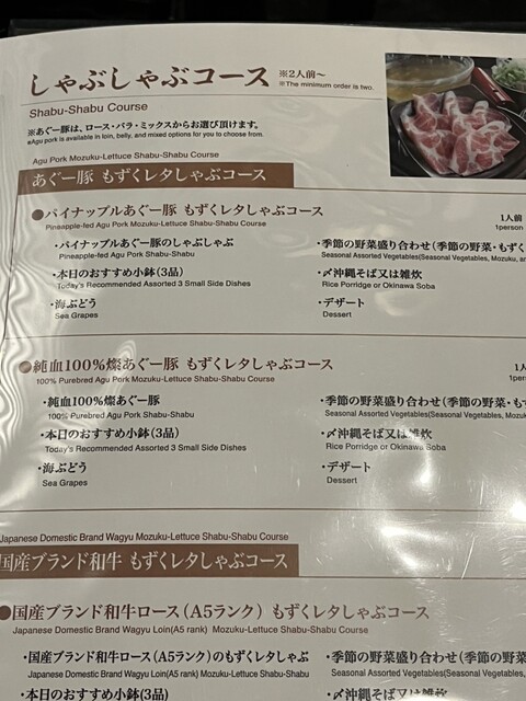 パイナップルあぐー豚のしゃぶしゃぶ、というチョイス をしました。
