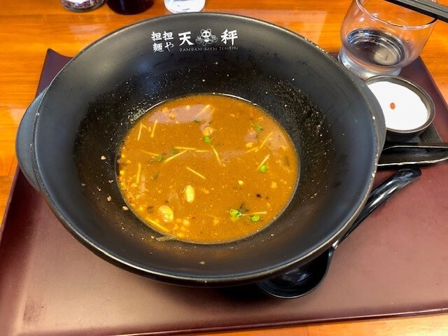 平日に有休とって、今年最初の屋へ行ってきました。四日市にある、担担麺や 天秤❕12時過ぎにつきましたが、駐車場も空いていてよかったです。。。駐車スペースが少ないので直ぐに一杯になりそうですが・・・入店して券売機で食券を買うシステム。私は辛いのがあまり得意ではないので、ごま和えそばにしました。席はカウンター席のみ。14席くらいでしたかね?食券を渡し、5分くらいで着丼。麺はミンチやスープが良く絡むようにちぢれ麺。スープもお子様が安心なだけあって若干まろやかなスープとなっていました。スープの量がやや少なく感じられますが、これには訳があって追い飯サービスがあるからです。麺を全て平らげて早速追い飯を・・・ミンチとスープとかき込みました。最後に杏仁豆腐を食べて、ごちそうさまでしたお口直しの杏仁は最高でした.