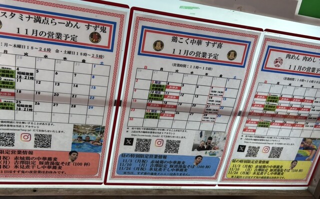夜は、すず鬼さん、昼はすず喜さん、金曜日の昼だけすず気さんと店舗名が変わって、スタ満ソバ、こく塩、肉めん・肉めしとそれぞれ提供メニューが変わります。