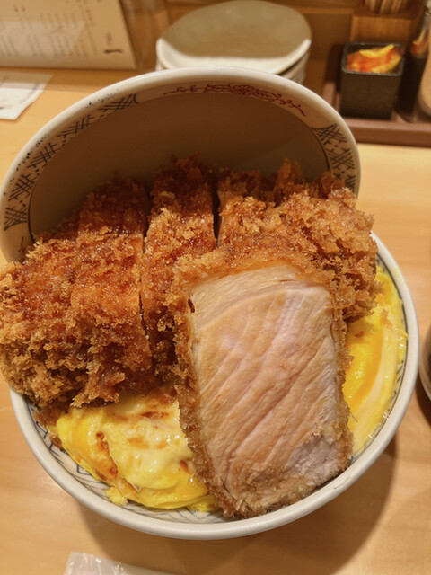 カツ丼は分厚いながらもお肉が柔らかくとても美味しかったです。タレも甘めでご飯が進みます。ただ、若干味が薄めに感じました。かつ丼を注文すると、カツ丼のタレを無料で別皿で追加してもらえます。
