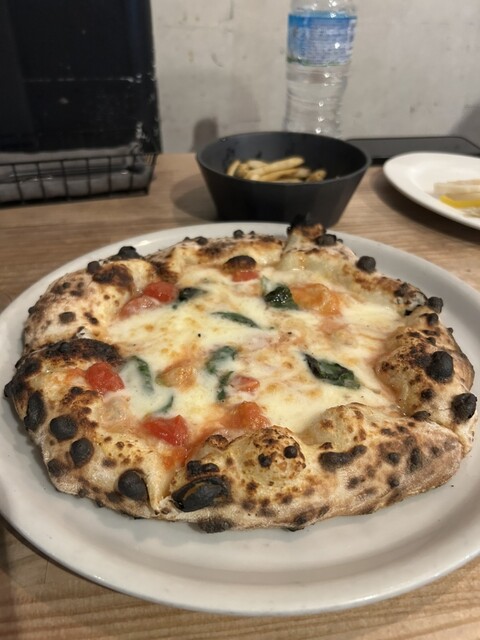 私たちはマルゲリータと生ハムandルッコラのピザ、ポテトとピクルスを注文。