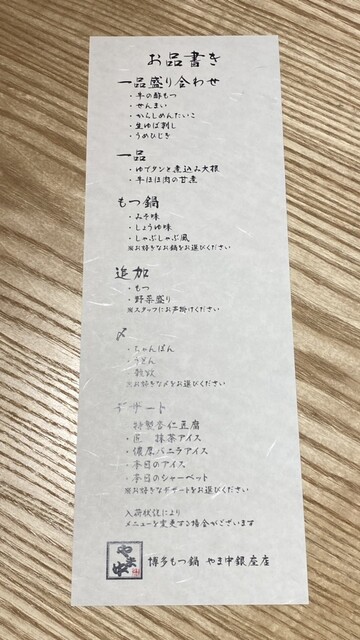 お品書きが別のコースのものを置かれていたが、そちらもウェイターの方が気づいてくださり、交換してくれた。