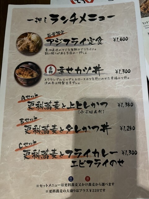 更科蕎麦と上ヒレカツ(小ごはん付き)