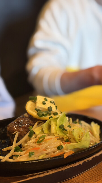 同行者が注文したハンバーグも少し分けてもらいましたが、こちらもとてもジューシーで肉の旨みがしっかり感じられる一品でした。