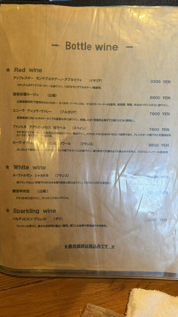 河口湖近くの森に囲まれた場所にあり、とても静かで落ち着いた雰囲気。店内はブラックを基調としたシックな内装で、大人っぽく居心地の良い空間です。今回は奥の座敷席に案内していただき、ゆっくり過ごせました。混雑もそこまでなく、待ち時間なしで入店できたのも嬉しいポイントです。