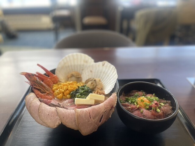 今回はスペシャルラーメンと辛味噌、味噌ラーメン、ローストビーフ丼を注文。