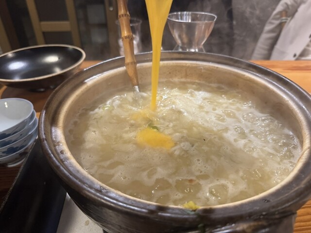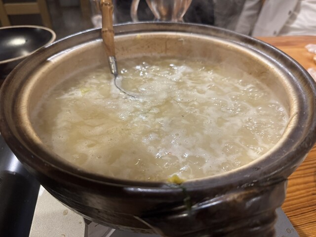 1人一つづつの蟹味噌を甲羅ごと渡されて蟹味噌でしゃぶしゃぶするスタイル。
