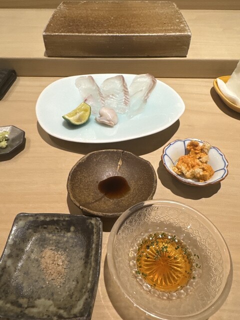 特にカワハギの肝醤油とコハダ、鮑の肝醤油と残った肝醤油にご飯を浸して食べるリゾット風も美味しかったです。