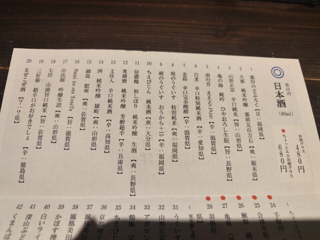 オーダーはお酒も一品も紙に書いて注文スタイル。