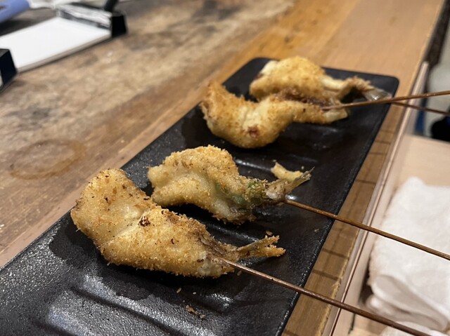 とりあえず串揚げをおまかせで8本注文しました。その際に、苦手なものだけでなく、これだけは入れてほしい!というものも合わせて聞いてくださったのが嬉しかったです。どれも美味しくて感動でしたが、特にネギがイチオシ!ぜひ食べてほしい!