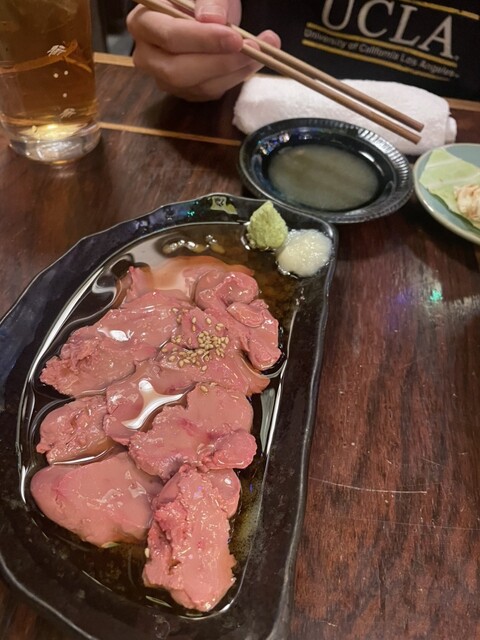 レバ刺しとブロッコリーも注文!レバ刺しにはニンニクわさびがこんなに合うことを新発見