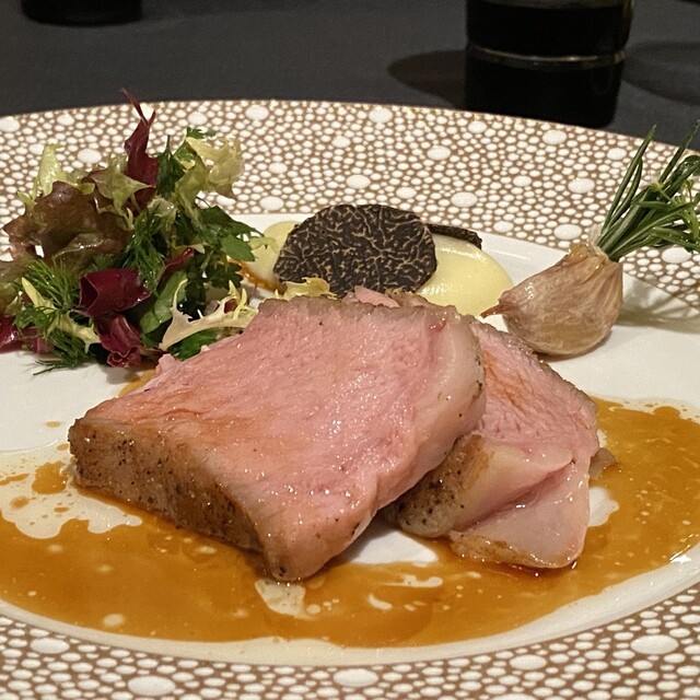 フランス産仔牛のロティ ポムピュレとハーブのサラダを添えて