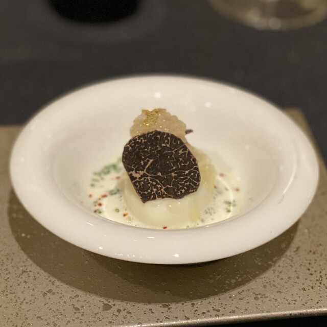 黒トリュフとインカのめざめのコンフィ フォアグラのコポーと共に