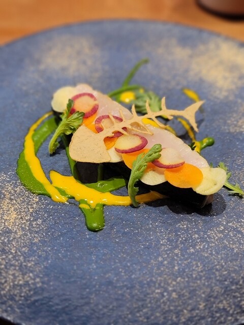 モダンフレンチでフレンチならではのソースにモコシェフのカラーが少し入った優しいフレンチ。