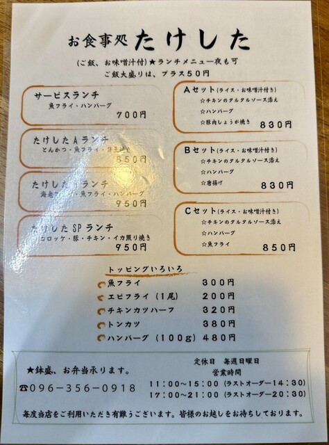 Cセット 850円 ご飯大盛+50円