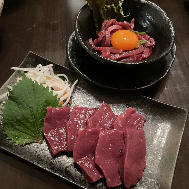 ハツ刺やさくらユッケ、和牛握りも旨すぎー。