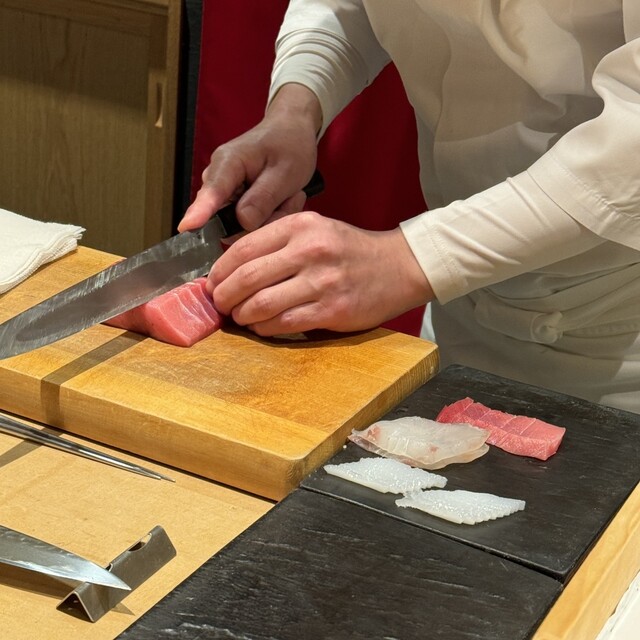 程よく脂がのっており、大将の職人ワザを見ながら食べるお寿司は極上