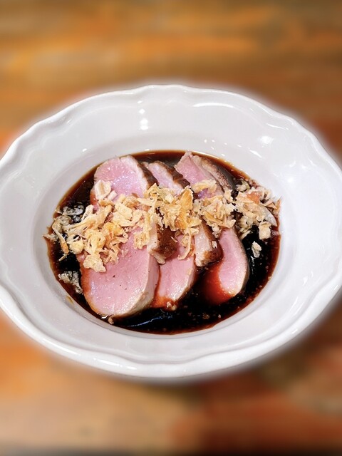 鴨肉の紅油のソースも最っ高。ソースうますぎ!