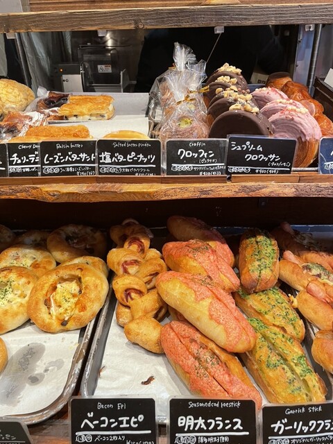 高円寺駅南口すぐ、高架下にお店はあります。インスタで見かけた明太フランスが美味しそうだったので来てみました。お得なモーニングやランチは整理券を配るほどの人気ですが、家でゆっくりパンが食べたかったのでテイクアウトを。