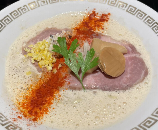 座銀グループの特徴であるクリーミーに泡立つ鯛スープが香り高いですね。味もさすがの座銀クオリティ。まるで鯛の塩焼きをいただいてるよう。