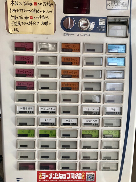 今回はネギチャーシュー硬めを券売機にて購入です。