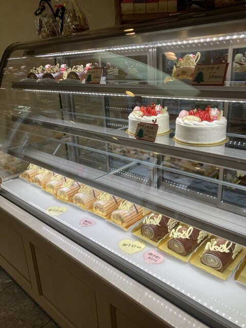 ショーケースには苺のデコレーションとブッシュドノエルのケーキしかありません。