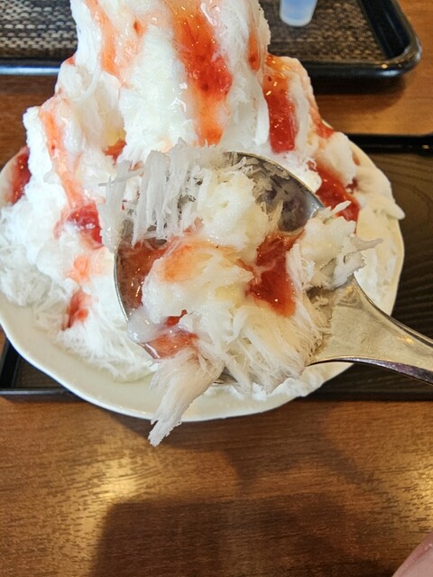 なんせ暑いのでかき氷を求めて色々お店回ったけど何処もいっぱいとか品切れとかで文明堂さんに寄ってみたら少し待ちましたがなんとか食べれました(笑)ふわふわの氷が体にしみるー食べ終わる頃には寒くて震えてましたね(笑)とても美味しかったですごちそうさまでした✨