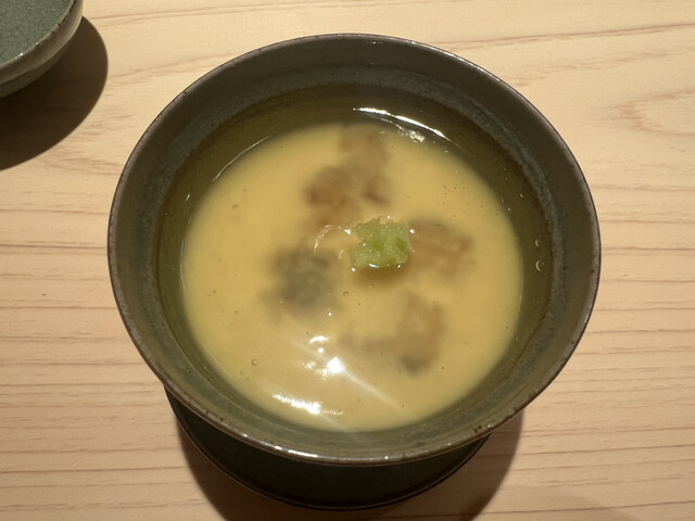 勤務先の先輩繋がりで誘って頂く機会があり、平日17時半にお伺いしました。大将の尾崎さんはメディア露出も多い有名人ですが、流石のプレゼン力に感銘を受けながら頂く握りとつまみはどれもハイクオリティなものばかり。スペシャリテのプリン巻きと港区巻きに加えていわし、蛤、中トロ、白子あたりは赤酢のシャリとネタが一体となっていて特に忘れられない食感と美味しさで、スパークリングや日本酒に続いて頼んだケンゾーエステートの朝露(大好きなソーヴィニヨンブラン!)と共に最高に楽しいエンターテインメント空間を満喫しました。また大事な仲間と共にカウンター貸切でお伺いしたいと思います。ご馳走様でした!(評価はお約束の星5つで!)