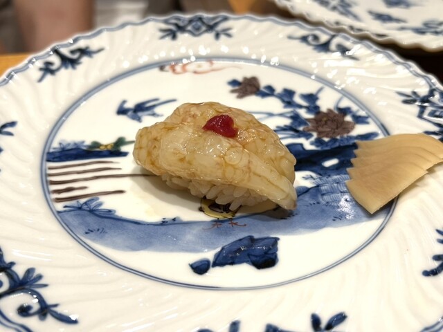 シャリは赤酢がしっかり目に効いていて、厚みのある新鮮なネタとの組合せが良い感じ。特に印象的だったのがそのコリコリ食感と旨味に思わずリピートしたバイ貝、一週間寝かせた濃厚な旨味が堪らない宮城のトロ、煎り酒に漬け込んだネットリ&プリプリのガス海老あたり。こじんまりの店内なので大将の所作をカウンター越しに間近に堪能でき、舌にも目にも美味なる握りを堪能しました。