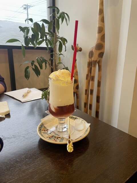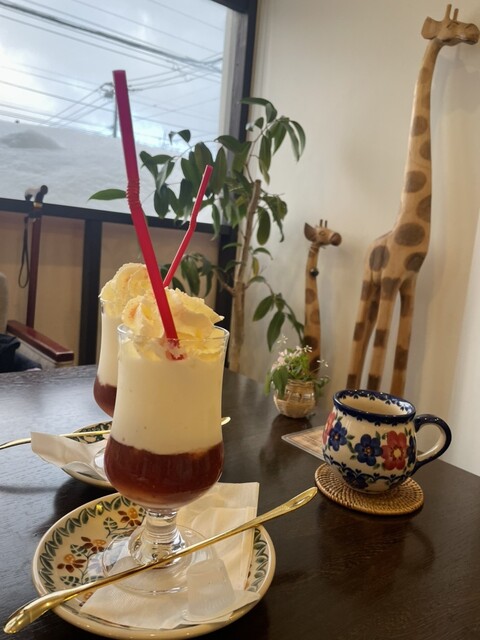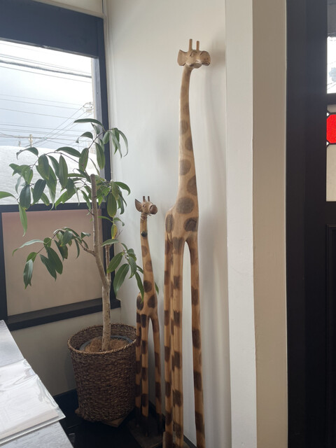 何人かお客様もいるも、フロアは座れて、キリンさんのいる一番手前の席に座る。各机に小さな花もいけてあって良い気持ちになる。