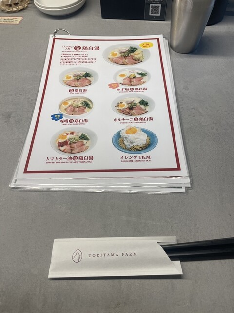 妻はワンタン入の泡鶏白湯、自分はトマトラー油泡鶏白湯にワンタン入、それに肉丼をセットで頼み、妻とシェア。