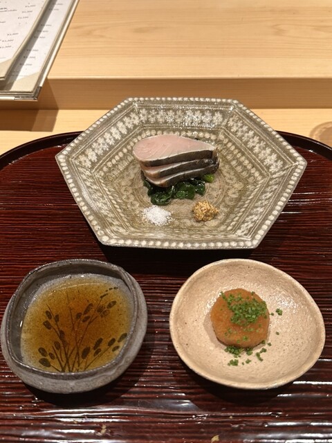→自家製のからすみは味噌で漬けたものだそう。味噌の風味がしっかりとしていました。