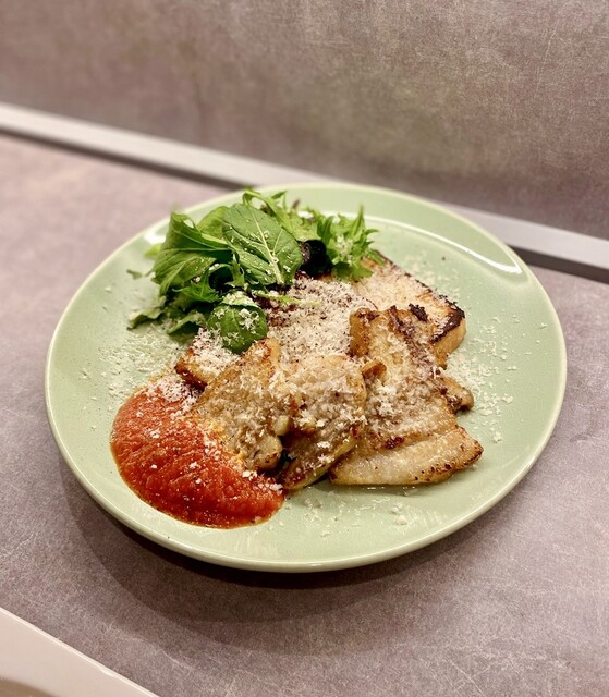 地鶏がとても柔らかくレモンの風味がよく効いていて、あっさりしていながらもパン粉の香ばしさが良い!