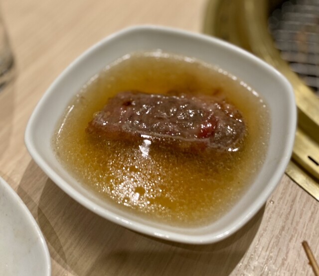黄金の牛骨出汁スープと一緒に頂きました。