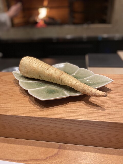 薪で炙られた鮪は口に入れるとフワっと薪の香り。鮪のとろける舌触りといぶりがっこのアクセントが素晴らしい。こちらでしか頂けない贅沢。