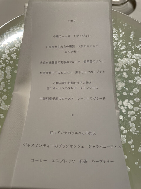 アナグマとかはあんまり?という感じだが、山羊ミルクのババロア、フォアグラを挟んでチー...