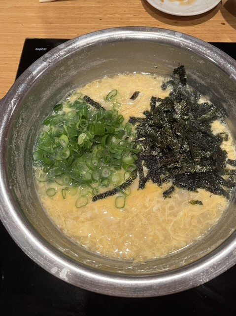 最後は雑炊を注文。これは鍋が回収され作られた状態で再度提供されます。自分で作らなくていいのが楽です。出汁が効いた雑炊で非常に美味しく満足!