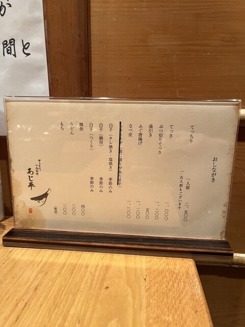 時価なのでメニューには価格は載っていませんが、最後のお会計から逆算すると1800円程度。たっぷり入っており、市内のふぐ料理屋では間違いなく倍の値段します。あれば絶対に頼んだ方がいいです!