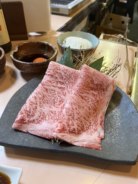 綺麗な刺しが入ったサーロインをさっと炙りオンザライス。卵を乗せて豪華な卵かけご飯に。質のいい脂で卵黄と混ざり非常に美味!豪華すぎる一品でした。