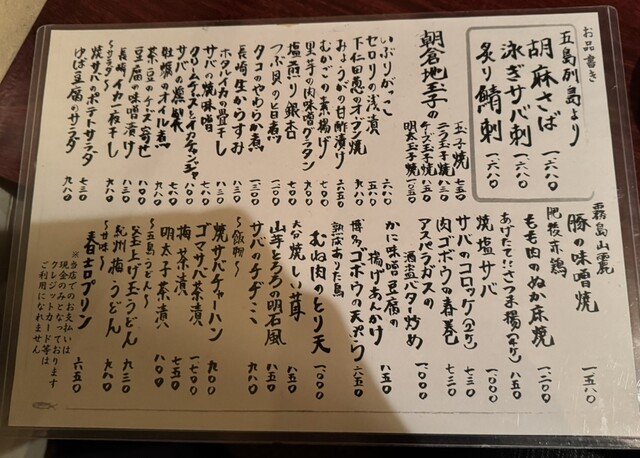 ややお高めですが、お店おすすめの胡麻さば(1,680円)、泳ぎサバ刺(1,680円)は絶品で鯖に対する価値観が変わります。