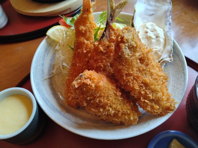 一口では食べられないサイズのカキフライが6個、ジューシーでとても美味しかったです。