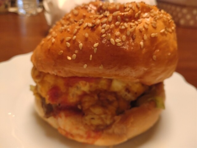 バンズはサクサクで、パティがとてもジューシーで美味しかったです。