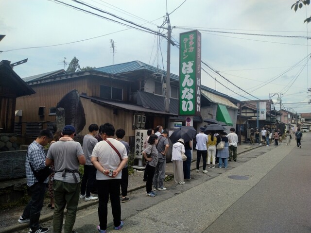 23年6月10日 土曜日、新潟旅行の帰りに、行列覚悟で初めて訪問しました。11時50分頃到着で、お店の隣の駐車場まで並んでました。行列に並んでいると店員さんが、日傘を貸してくれ、とても親切でした。1時間ほど並んで入店。店内は豚骨の独特な香りが充満してます。4人で、肉そば大盛、しなそば、ネギラーメン、肉そばとライスを注文。スープは塩ベースにチャーシューの煮汁が合わさった感じで、いい意味で少しクセがあり、しっかりとした味付けで、とても美味しかったです。チャーシューも美味しく、沢山乗ってもスープは熱々で、ライスとも良く合いました。