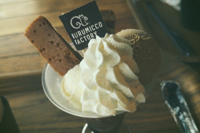 くるみっこを生クリームやアイスにディップして食べて贅沢なパフェでした!