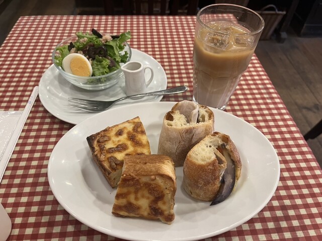 パン類は食べやすいように半分にカット。さらにクロックムッシュは温めてくれてました。